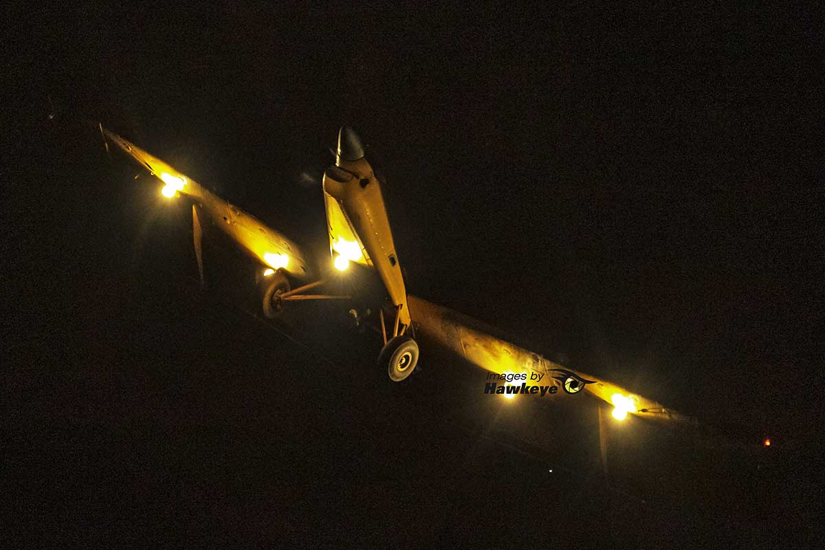 Starting at dusk, the fields are visited by various types of crop dusting aircraft such as the one pictured. Its hard enough to do this in the day time but these intrepid pilots do it as the sun sets and into the dark of the night. Why? Because it is the best time of the day, the temperatures are dropping and more importantly the winds diminish or disappear completely allowing a more accurate application without over spray.