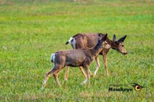 - Mule Deer fawn and her mom.
