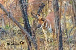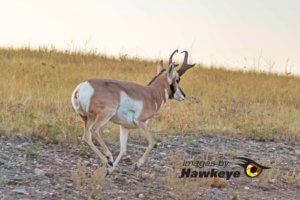 - Male Pronghorn trotting past.
